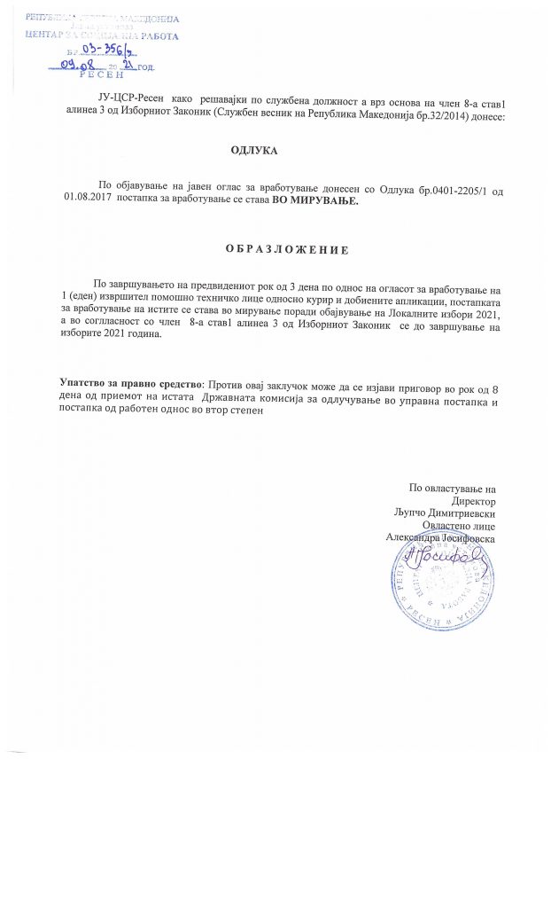 – Решение за овластено лице за прием на пријави од укажувачи